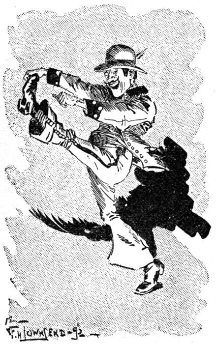 It was a brilliant scene. The apartments of the Old Maids' Club had been artistically decked with the most gorgeous flowers that the millionaire could afford, and the epigrams had been carefully removed so as to leave the rooms free for dancing. As Lillie's father gazed around, he felt that not many millionaires could secure such a galaxy of beauty as circled in the giddy dance in his gilded saloon. It was, indeed, an unexampled gathering of pretty girls—this inaugural soirée of the Old Maids' Club, and the millionaire's shirt-front heaved with pride and pleasure and the Letter-Day Cupid that still hung on the wall seemed to take heart of grace again.