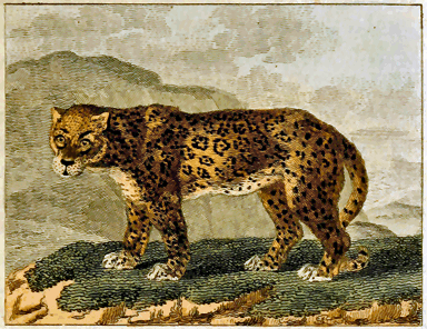 In the preceding article we have seen that the lion exists not in America, and that the puma of Peru is an animal of a different species; and we shall now find that the tiger and panther belong also to the old continent, and that the animals of South America, to whom those names have been applied, are also different. The real tiger is a terrible animal, and more, perhaps, to be dreaded than the lion himself. His ferocity is beyond comparison; but an idea of his strength may be drawn from his size; he is generally from four to five feet high, and from nine to fourteen in length, without including his tail; his skin is not covered with round spots, but with black stripes upon a yellow ground, which extend [7] across the body, and form rings from one end of the tail to the other. These characteristics alone are sufficient to distinguish him from all the animals of prey belonging to the new continent, as the largest of them scarcely ever exceed the size of our mastiffs. The leopard and panther of Africa and Asia, though much smaller than the tiger, are larger than the rapacious animals of South America. Pliny, whose testimony cannot be doubted (since panthers were daily exposed, in his time, at the theatres in Rome), indicates their essential characteristics, by saying, their hair is whitish, diversified throughout with black spots, like eyes, and that the only difference between the male and female were the superior whiteness of her hair.