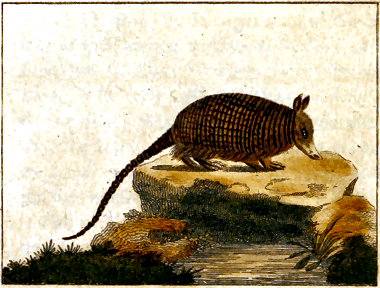 The opossum belongs to the south parts of the new world, but he does not, like the armadillo, seem confined to the hottest climates, for he is found not only in Brasil, Guiana, and Mexico, but also in Florida, Virginia, and other temperate regions of this continent. They are very common in these countries, as they bring forth often, and most authors say four or five, others six or seven, at a time. Marcgrave affirms, that he has seen six young ones alive in the pouch of the female; they were about two inches in length, were very nimble, and went in and out of the pouch many times in a day. They are very small when just brought forth: some travellers say they [245] are not bigger than flies when they go out of the womb into the pouch, and attach themselves to the teats. This fact is not so much exaggerated as might be imagined, for we have seen in an animal, whose species is somewhat like that of the opossum, young ones sticking to the teats not bigger than beans; and it is not improbable, that, in these animals, the womb is only the place of conception and first formation of the fœtus, whose unfolding is completed in the pouch. No one has observed the time of their gestation, which we think is shorter than in any other quadruped; and as this early exclusion of the fœtus is a singularity in nature, we wish those who have an opportunity of observing the opossums in their native country would contrive to discover how long the females go with young, and how long the young remain attached to the teats. This observation is curious in itself, and may become useful, in pointing out some means of preserving the lives of children born before their natural period.
