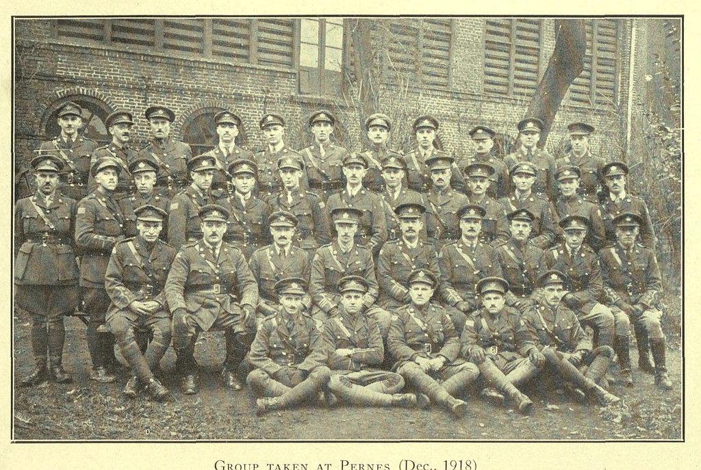 Third Row:—Lt. H. H. Hyland, Lt. J. J. Doble, Capt. W. E. Shier, Maj. F. H. Moody, Maj. H. P. Cooke, Capt. A. F. Hind, Maj. G. W. P. Every, Capt. A. W. Pratt, Capt. H. V. Gould, Capt. H. L. Major, Capt. G. E. Gilfillan.