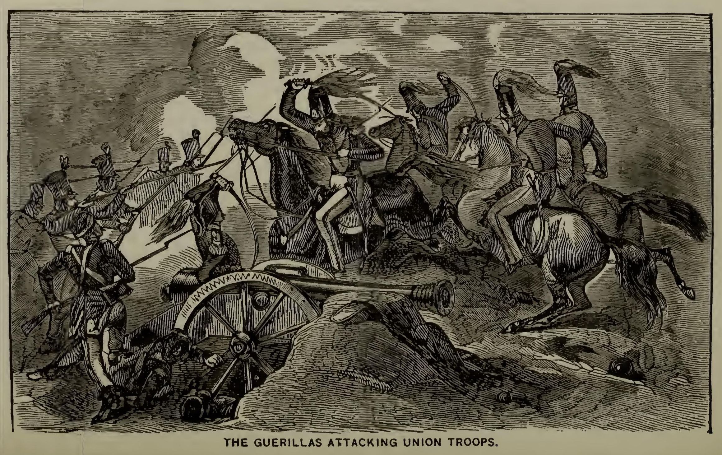 CHAPT VIII. GUERILLAS ON THE WAR-PATH. CUNNING AND DUPLICITY PROMPTING THE ACTORS. DESTRUCTION IN THE BACKGROUND.
