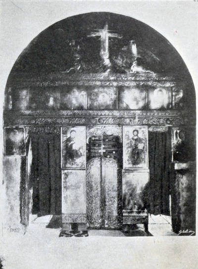 | "The altar is shut off from the rest of the building by a carved and painted screen" | 39 |