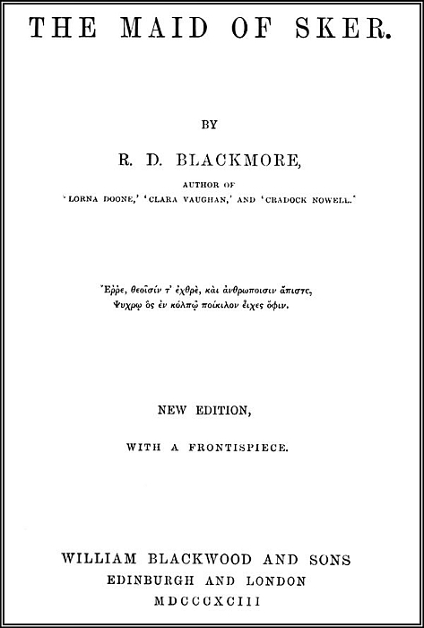 Project Gutenberg's The Maid of Sker, by Richard Doddridge Blackmore This eBook is for the use of anyone anywhere at no cost and with almost no restrictions whatsoever. You may copy it, give it away or re-use it under the terms of the Project Gutenberg License included with this eBook or online at www.gutenberg.org Title: The Maid of Sker Author: Richard Doddridge Blackmore Release Date: July 1, 2014 [EBook #46156] Language: English Character set encoding: ISO-8859-1 *** START OF THIS PROJECT GUTENBERG EBOOK THE MAID OF SKER *** Produced by Matthias Grammel, sp1nd and the Online Distributed Proofreading Team at http://www.pgdp.net (This file was produced from images generously made available by The Internet Archive)