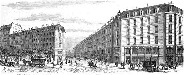 M. Emile Leménil, architecte, a formulé un programme et présenté des plans. Une Société anonyme s'est constituée pour mettre ces plans à exécution, et, dans l'espace d'une année, l'entreprise a été menée à bonne fin. Notez que l'opération est des plus considérables. C'est toute une rue nouvelle, d'un très-joli aspect, qui va créer une élégante petite ville dans l'immense faubourg. Cette rue, que la Compagnie livre à la ville de Paris entièrement terminée, avec ses trottoirs et sa chaussée, porte le nom de rue de l'Industrie Saint-Antoine et relie entre elles les deux grandes artères du faubourg Saint-Antoine et du boulevard Voltaire. Nous l'avons dit; l'idée-mère qui a inspiré la création de ces nouveaux immeubles a pour but de mettre à la disposition de l'ouvrier une installation complète pour sa famille et pour son atelier. Toutes les locations de la rue de l'Industrie Saint-Antoine sont disposées pour y appeler comme annexes l'industrie et le travail.