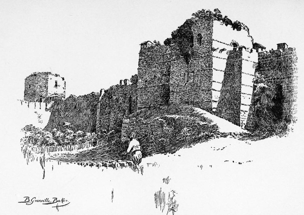 And travelling toward his Eastern goal the reader passes through many an ancient city whose walls chronicle the history of its inhabitants. He should take his journey easily, should move eastward with no undue haste. Let him go down the Danube, that mighty river which arises from a small opening in the courtyard of a German castle, flows majestically through the lands of many nations, where before the days of history Saga held her sway and gave birth to the Nibelungs. In its waters many ruined castles are reflected, amongst others Dürnstein, where Blondel’s voice at length brought hope of deliverance to his imprisoned liege, Richard Cœur-de-Lion. He will pass many fair historic cities, Vienna, Budapesth, Belgrade, the White Fortress, and so on through the Iron Gates, whence the great stream swells with increasing volume through the plains of Eastern Europe to throw out many arms to the Black Sea. It is here that Author and Artist await you; for to worthily approach Constantinople you should do so from the north, and by sea. And you are in good company, for by this seaway came the Russians in their several attempts on the Eastern capital. The Turks, too, the present masters of the situation, found this way and followed it to victory. These, too, overcame great difficulties—they sailed in small vessels and were much at the mercy of wind and weather; in fact, the Russians found their plans frustrated by the elements. They met with anything but a pleasant reception, whereas the traveller nowadays steams in great comfort in a racy-looking Roumanian