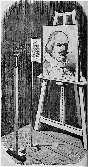 Le cadre sur lequel on reçoit l'image grossie doit être tendu avec du papier blanc ou une toile préparée pour peindre, afin que l'ombre noire fasse contraste avec le fond. Les peintres verront qu'on obtient ainsi de très-beaux effets d'ombres portées qu'il serait intéressant de fixer sur le papier. On dirait des dessins grandioses d'un relief extraordinaire et d'un aspect sculptural.