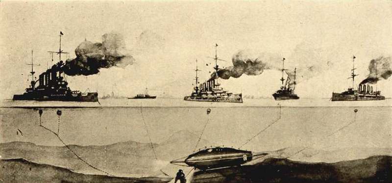 There have been published one or two good works dealing with this subject in a very complete and intelligible manner, but intended for those engaged in engineering pursuits.[viii] One of the best of these was "The Evolution of the Submarine Boat, Mine and Torpedo, from the Sixteenth Century to the Present Time," by Commander Murray F. Sueter, of the Royal British Navy, published in 1907.