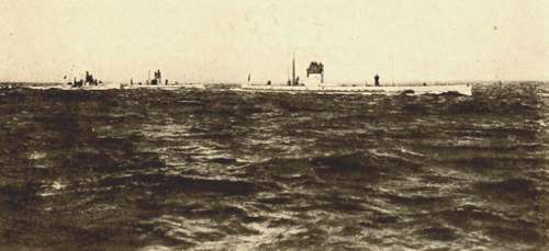 | Russian-Lake Type Cruising Submarine "Kaiman" making a Surface Run in Rough Weather in the Gulf of Finland | 239 |