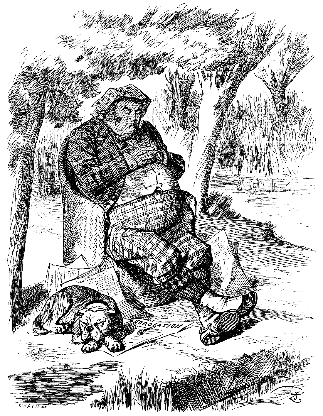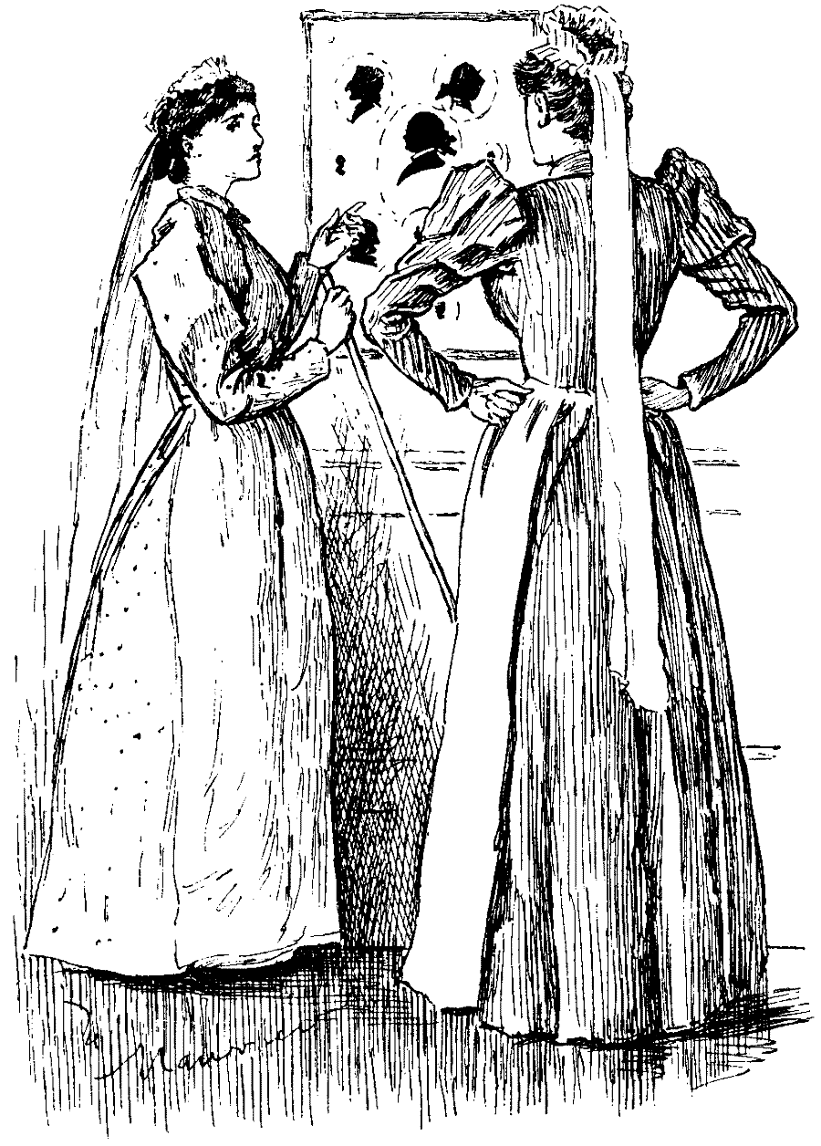 The Dream.—I was seated opposite a lady, popular alike in the social and political world, whom I will designate as "Lady Jay." It was at a dinner-party, I think, though it might have been some other sort of entertainment, as there seemed to me to be, between Lady Jay and myself, the narrow width of a very long table, the ends of which were out of sight. This table was covered with a white cloth, not too clean; and there were no knives, forks, plates, or dishes. The room was inconveniently crowded by persons, inextricably mixed up, none of whom, however, incommoded us in the least, or, indeed, seemed to take the slightest notice of our presence. Somehow, this struck me as delicate conduct on their part. Lady Jay was insisting that an Archimandrite could, or could not, do something or other officially. But, having more than once demonstrated to Lady Jay that this act, whatever it was, had no essential bearing on his clerical position, I continued to take very slight interest in the discussion; at least, I thought I did not, until, on Lady Jay suddenly becoming dreadfully in earnest, and most positive as to her being in the right, a Whip of the late Government, whose name I could not recall, but with whose lineaments I was perfectly familiar, interposed some conciliatory remarks. Then Mr. Gladstone, in the absence, unaccountably sudden, of both Lady Jay and the Government Whip, strode up and down on the hearth-rug, rubbing the back of his head with his left hand; whereupon I became aware that we were no longer wherever I had been until the appearance of Mr. Gladstone on the scene, but that we were in the library of the Prime Minister's official residence in Downing Street. I was seated in an odd sort of spider-legged arm-chair. Mr. Gladstone, bringing himself to a halt, turned round, and asked me, pointedly, "Whether I could play the piano." Being rather nettled at the tone of this inquiry, which seemed to imply a doubt of my proficiency as a pianist, I replied, somewhat testily, "Certainly; rather better than Beethoven." Apparently satisfied with my answer, Mr. Gladstone said that "if I would oblige him by not continuing my discussion with Lady Jay, in which I had been," he admitted, "absolutely right"—and here he made some facetious allusion as to ladies in general, of which I could not catch one word—"I should," he went on, "have a seat in the Cabinet." Oddly enough, this offer of his did not strike me as anything so very extraordinary; and I at once replied, "No, thank you, I'd rather not." But Mr. Gladstone would take no refusal; he said, "I have come to a decision on this subject," and then abruptly disappeared, through the wall. Whether it was a few minutes, or hours, afterwards, I could not for the life of me determine, being only conscious of some time having elapsed, before I found myself in an avenue on the Bayswater side of Hyde Park, walking up and down with Mr. John Morley. Our conversation there was, I suppose, on the subject of Bulgaria, as this topic was continued by us in a kind of narrow box-room, with hat-pegs on the walls, on which bathing-towels were suspended; there were also trunks on the floor, and school-desks all about, on one of which Mr. Morley rested his elbow, swaying himself backwards and forwards like a pendulum, while always talking to me (I was seated on a box), and uttering platitudes [pg 125] about Bulgaria. I interrupted him by saying curtly, "It is no use talking to me like that, as I am in the Cabinet." Mr. John Morley was staggered; but, recovering himself, he turned to Herbert Gardner (to whom I apologised for not remembering his title, while he, sitting on a smaller box, smilingly refused to enlighten me), and asked for corroboration of my statement. Whereupon I produced an autograph letter of Mr. Gladstone's to me, which entirely satisfied Mr. John Morley, who, having handed it to Herbert Gardner, now candidly disclosed the schemes of the Government on the subject in question, putting forcibly before me "how we are going to deal with Bulgaria." Not a single word of what he said could I understand. Still, as a member of the Cabinet, I felt bound to give his explanations my gravest attention, my difficulty being not to expose my hopeless ignorance by any inappropriate question. It was with some new-born sense of importance that I found we were once again in Lady Jay's company, this time in her drawing-room, and seated in a low chair, while John Morley had brought with him the school-desk, on which he was still leaning his elbow, and still swaying and swinging like a pendulum. Lady Jay was all for resuming her discussion about the Archimandrite, refusing to credit the assurances given by Mr. Morley (balancing himself on his elbow) and myself as to my being in the Cabinet secrets. At this point rushed in someone, who was alternately Herbert Gardner and a Ponsonby, until he settled down into being Herbert Gardner for certain, who exclaimed excitedly, "I have just seen Mr. Gladstone! He says, 'It is absurd to suppose that his letter ever meant anything of the sort!'" I quietly demanded the restoration of Mr. Gladstone's letter to me; so did Mr. John Morley. The protean representative of Herbert Gardner or Ponsonby, or anybody else, replied simply, "I haven't got it." This seemed to perfectly satisfy everybody, and no further questions being forthcoming, Lady Jay seized the opportunity to declare triumphantly, addressing me personally—John Morley and the protean representative having disappeared—how she had "ascertained from a Cardinal that".... But what was the solution of the difficulty, or what was the original difficulty itself, I shall never know in this world, though I may do so in the World of Dreams, as here I awoke, and was so impressed with the reality of the events that had passed, and with the present necessity for recording them, that I at once entered them in my note-book, and here they are.
