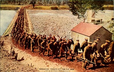 This is part of Canada's splendid contribution to the defense of the motherland. The Royal Horse were among the first contingent of 33,000 to embark—Canada pledged 200,000 altogether.