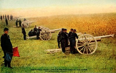 The French guns, by many military experts, are said to be superior to any other field artillery. Their bore is only 2.95 inches, but the initial velocity and accuracy are greater than the German guns, and their lightness makes them more mobile in action. A battery has about the same effect on an advancing line as a mowing-machine on a harvest field.