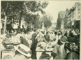 Rows of geraniums flame in the well ordered gardens of the Tuileries. Masses of flowers, gay in color as the ribbons streaming from the bonnets of the nurses, lie in brilliant patches along gravel walks or within the cool shadow of massive architecture. Brown-legged children, in white socks and white dresses fresh from the blanchisseuse, run screaming after runaway hooples, or watch in silent ecstasy the life and exploits of Mr. Punch at the Théâtre Guignol.