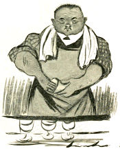 Imbécile, have you prepared your butter?” he cried to one of his staff, a clean-shaven little man whose face bore the intelligence of a ground mole. “Idiot,” he bawled at a third, “didn’t I tell you the six-franc ducks were on the left side of the cold room back of the two-franc pâtés de foie gras?”