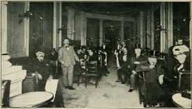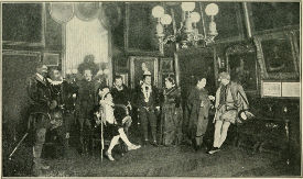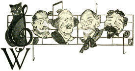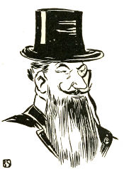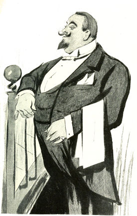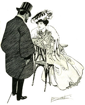 Meanwhile, several newcomers are crowding about the table, among them three well-groomed men in top hats and frock coats, evidently having strolled over from their club, and a faultlessly dressed old baron, with a tea rose in his button-hole, who is now leaning over the desk, poring over the diagram through his black-rimmed monocle.