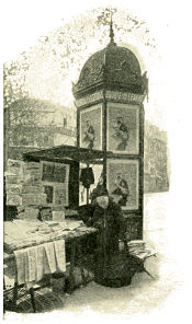 Bon,” replies madame, approvingly. She dips a pen in violet ink and writes carefully upon a checklike document the numbers of the chosen seats, tears this check from its stub, blots it, and scratches the corresponding numbers from the diagram. “Voilà, Monsieur,” and she hands you your ticket. Then she dives into the pocket of her petticoat for the key to a money-drawer from which to make your change. Finally, as you raise your hat to go, she adds, in parting assurance, with a little shrug of her shoulders beneath her worsted shawl: “I am sure Monsieur will find the seats excellent; I should have chosen them myself.”