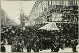 If you are an epicure with a fortune, you will find restaurants whose interiors are marvels of refinement and good taste, whose cellars hold priceless wines, and whose cuisines would grace the table of a king; or, if you are a bohemian, there is good-fellowship and a cheering dish awaiting you at a price within the means of even poets and dreamers. But it is after one dines that Paris throws open the doors of her varied attractions. There are the ever-moving fêtes foraines—mushroom growths of tawdry side-shows springing up in the different Quartiers in a night—with their carrousels and menageries, and the smarter circuses, like the Cirque Médrano, the Nouveau Cirque and the Cirque d’Hiver. There are the cheap shows of the small Bouis-Bouis, and the big open-air café concerts of the Champs-Élysées, the Concert des Ambassadeurs and the Alcazar d’Été, and that exquisite music-hall, the Folies Marigny, the Jardin de Paris, the Folies Bergère, the Casino de Paris and the Olympia, and, in contrast to these, the Opéra, the Opéra Comique and the Bouffes Parisiennes. There are serious concerts and little serious concerts like the Concert Rouge. There are the shows and cabarets of Montmartre and those of the rive gauche, the Noctambules, and the Grillon. There are the cheap dramas of the bourgeois theaters in remote quarters of the city, and the risqué plays of the Palais Royal; the daring, independent Théâtre Libre, and the Châtelet, famous for its scenic wonders; the lighter plays of the day at the Vaudeville, interpreted by Réjane; the splendid new theater of the divine Sarah; and the historic Français, with its finished acting in perfect French. The list is endless.