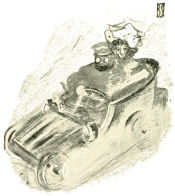 It is the fat cognac merchant now who is gesticulating to the rest of the group, pausing at intervals to wipe the perspiration from his oily neck. Near them, four Arabs, swathed in spotless burnooses, their bare feet encased in sandals, sip in silence their steaming petites tasses of café Maure. Omnibuses lumber by. The air is vibrant with strident cries and the cracking of whips. An automobile passes, sputtering and growling through the mêlée of the broad boulevard, taking advantage of every chance space as it threads its way out to the green country beyond with its begoggled occupants to déjeuner at Poissy or perchance to dash farther on at a devilish pace to the sea and Trouville.