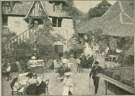 At another table on the terrace is a pretty blonde, her dainty feet resting in high-heeled slippers upon the little wooden footstool which the garçon has so thoughtfully tucked under them, and her eyes shaded by the brim of the reddest of hats. She is engrossed in writing a note, which she finally slips in its envelope. Then this dainty Parisienne calls the chasseur, that invaluable messenger attached to every big café, and gives him a few cautionary parting instructions. He springs upon his bicycle and in half an hour returns with another envelope, this one plain and unaddressed and containing a hastily scribbled line in pencil. The corners of the pretty mouth curl upward in a little satisfied smile as the answer is read.