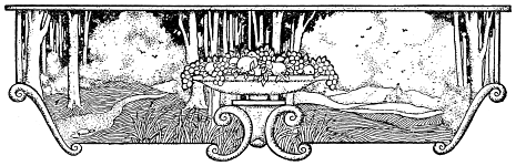 “Pray let me give drink to the thirsty, too,” he said. Picking up a small silver cup, he walked over to a brook that purled behind them, rinsed it out and, coming back, filled it from the bottle of wine that rested against the log.