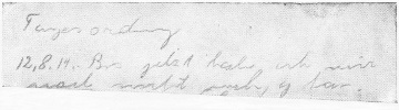 This took place on the fourth day of the war and enables us to understand why in a technical article on the Military Treasury (der Zahlmeister im Felde) the Berliner Tageblatt of the 26th Nov. 1914 (1 Supplement) notices as a mere incident an economic phenomenon which is however curious: “As it is a fact that far more money orders are sent from the theatre of operations to the interior of the country than vice versa ...” «Da nun aber erfahrungsgemäss[Pg 22] viel mehr Geld vom Kriegsschauplatz nach der Heimat gesandt wird ...».