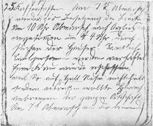 Private Handschuhmacher (of the 11 battalion of Jägers, reserve) writes in his diary: