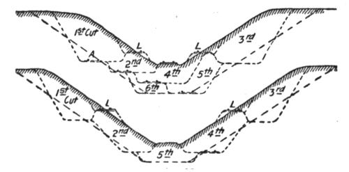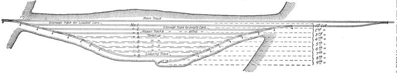 The following article originated in a short paper which was read before a local society of civil engineers, and there were so many requests made for this paper and the illustrations presented with it that the author was led to believe that there was a demand for such information. Believing that a better understanding of the capabilities of these machines will serve a useful purpose in economizing money, time and labor in the execution of work to which they are adapted, the author presents in this article the information learned by a long practical experience in this special class of work. Descriptions of the various steam shovels can readily be found in the trade catalogues of the different manufacturers, but very little has been published on the manner of using them in the execution of different classes of work, and the disposition of the excavated material after it has been loaded on cars or wagons. This part of the subject will receive most attention, and although much of it may seem very elementary to those who have had an extended experience in operating steam shovels, it may be entirely new to the much larger number who have had few or no opportunities for doing work of this kind. It has been the aim of the author to condense the reading matter as much as possible, making it a point to use many illustrations in place of lengthy explanations, thus presenting the subject more clearly than by extended descriptions.
