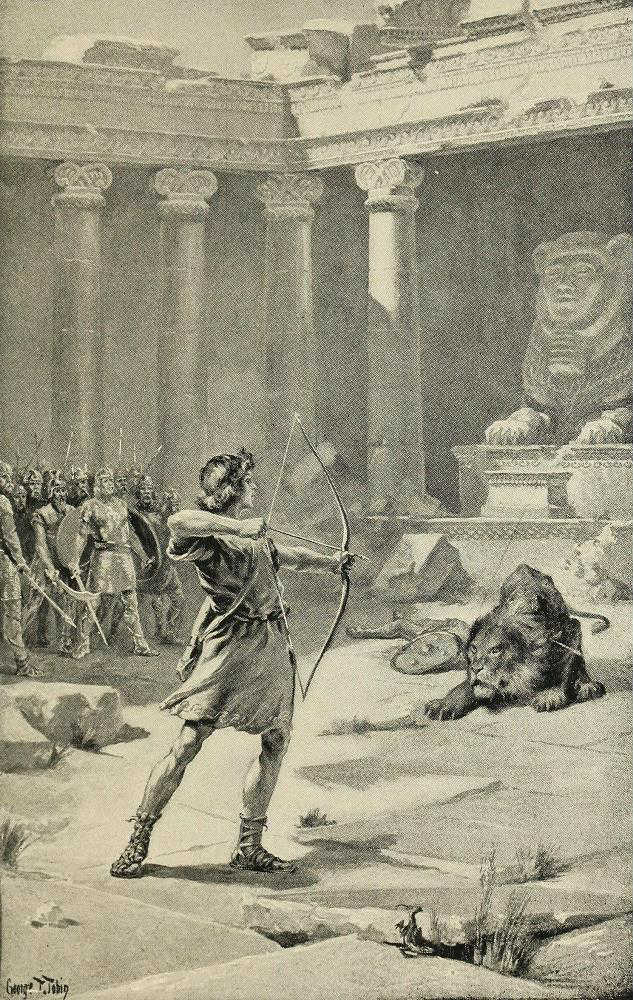 The harp grew then more softly musical, for he sang of the blue waves and the sunny shores of the southern seas; of their islands of beauty; of their harbors of peace and their cities of splendor; of temples and castles; of gold and silver and gems; but he seemed to drift beyond all these into a song of something beautiful, which yet was vague and far away and indescribable. His thought and word concerning it became like a refrain, until the minds of all who heard were filled with ideas of the dim and unattainable glory of the land of heroes, the city of the gods, the return of the White One, and the rising of the sun that will never set. Like deep answering unto deep were the last utterances of harp and harper, and as they suddenly ceased the tall young warrior stepped forward two paces and cried loudly: