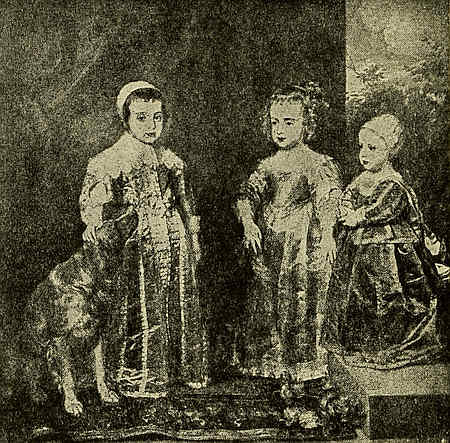 Look at the picture (Children of Charles I.) of these three children with their pet dog. You can tell that the dog is their playfellow and that he loves them, by the way he has taken his place at their side, and by the loving, trustful manner in which he looks up into the face of the boy whose hand rests on his[7] head. The baby (Baby Stuart), whose picture alone you often see, and whom you hear called “Baby Stuart,” clasps a big red apple in his chubby hands.