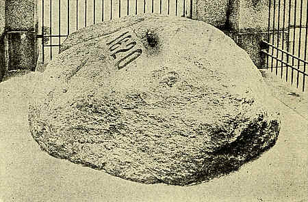 This rock has ever since been called Plymouth Rock, and it has been kept and carefully guarded through all the many, many years that have passed since the Pilgrims first stepped upon it. Here is a picture of the actual rock, which we all love so well. (1333. Plymouth Rock.) So many thoughtless people broke off bits for keepsakes that it was necessary to build an iron railing around it so that it could[21] not be reached. That has been taken away now. If you some day have a chance to visit Plymouth, you will see that a fine marble arch has been built over it.