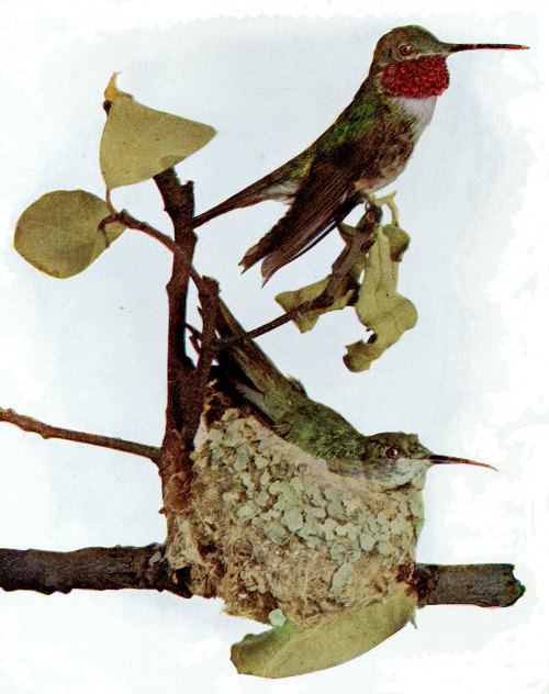 About the middle of May a gaily colored bird from his winter home in neo-tropical regions visits the United States. His body is bright scarlet, his slightly forked tail and his wings intense black and his bill sea green. The ornithologist names him the scarlet tanager—tanager being a Brazilian word applied to this class of birds. But he is also sometimes called the “pocket bird,” because his jetty wings when closed upon his red sides are fancifully thought to resemble pockets. He is also known as the black-winged redbird. It takes three years for his gaudy plumage to become perfect. His mate is clad in green, so that she is easily concealed when on her nest amid the leaves of the swamp oak or some other favorite nesting tree. The nest is shallow and loosely woven, so that the eggs may be seen from beneath. But it is strong enough to hold the young birds securely until fledged. The eggs, three to five in number, are greenish-blue, spotted with brown and purple. The young birds are a clownish looking set in parti-colored robes of scarlet yellow and olive green. The song of the tanager somewhat resembles that of the robin in modulation; but the quality of the song is so soft and wavering that there are observers who call him a lazy bird, too lazy to sing. But others declare that it is worth while to take a long tramp in order to listen to his beautiful notes. Mr. Abbott calls him a “gayly colored blunder” without peculiarity of voice or manner. His song has been translated “Pshaw—wait—wait—wait for me.” His call note is “Chirp-chirr.”