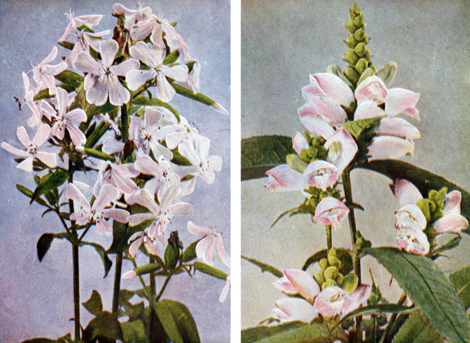 The Turtle-head or Snake-head is one of three species that are natives of eastern North America. This plant is well supplied with common names, as it is also called Shell-flower, Cod-head, Bitter-herb and Balmony. The generic name of this flower of the swamps and moist banks of streams is from the Greek word which means tortoise, the name having been given to the plant because of the fancied resemblance between the flowers and the head of a turtle or snake. One may be able, by stretching his imagination, to see this resemblance in the flowers of our illustration.