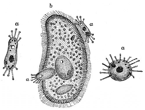 M. Figuier's plan is to begin the study of animals with the less perfect beings occupying the lower rounds of the Zoological ladder, his reason for doing so being an impression that the presence of the gradually perfecting animal structure, from the simplest organisms up to the more perfect forms, was specially calculated to attract the reader. "What can be more curious or more interesting to the mind," he asks, "than to examine the successive links in the uninterrupted chain of living beings which commence with the Infusoria and terminate in Man?"