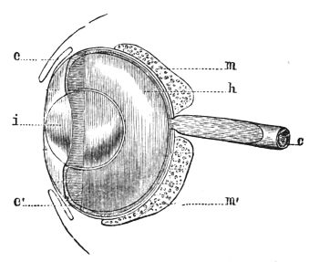 The dioptric arrangement, being the reverse of that which obtains in animals where "accommodation" is observed, and in whom the passive state is that of vision, arranged for distant objects, while the active state is that of vision accommodated at will for near objects.