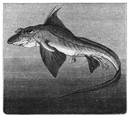 [14] The exceptions to these are the Doras, or flat-headed Hassar of India, which marches overland in large droves; the Swampines of Carolina (Hydrargyra); and the Perca Scandens, which in Tranquebar not merely walks over level ground, but climbs trees.