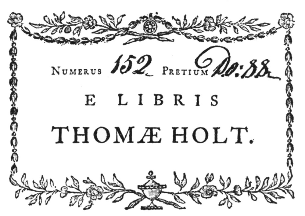 | E Libris Thomæ Holt | 18 |