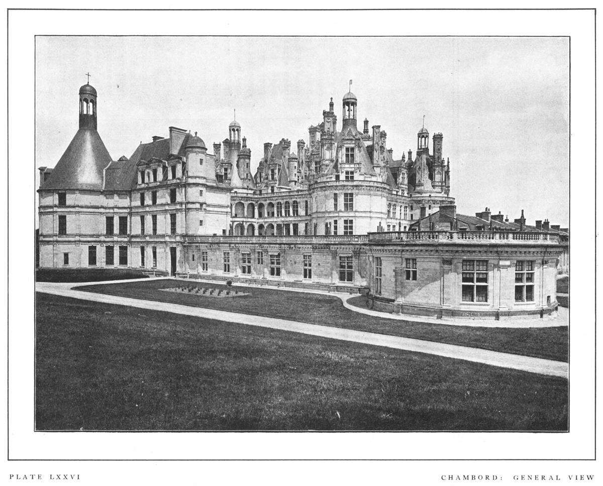 "Chambord is in truth a brilliant example of transition. The early Renaissance is there to be seen, taking on itself the burden beneath which the failing forces of the Gothic spirit had sunk. But the intention of the work is wholly foreign to the main direction taken by the new movement, and condemned, by its very nature, to remain, in spite of the wonderful genius lavished upon it, an unfruitful tour de force."
