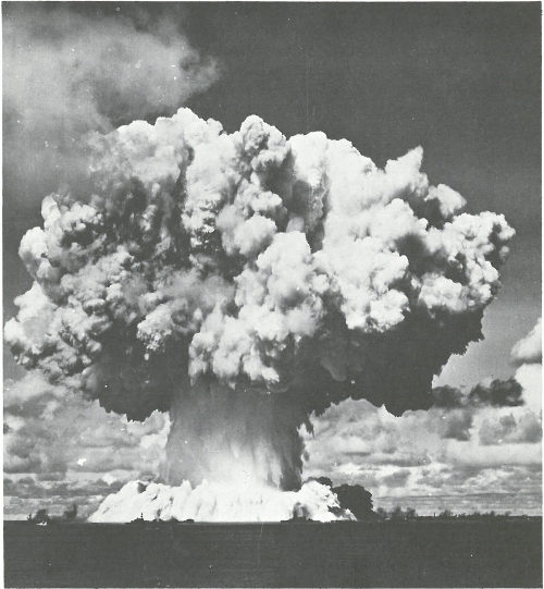 When World War II was ended, the impulse to test the new power was irresistible. There was profound curiosity about the revolutionary nature of the new force. There was a perplexed and fearful realization that the release of energy would have to be guarded and controlled. There was the knowledge that nuclear fission produced a miscellany of radioactive products presenting unexplored possibilities of hazard. The word “fallout” was coined to describe the deposition on the earth of radioactive debris from nuclear explosions.