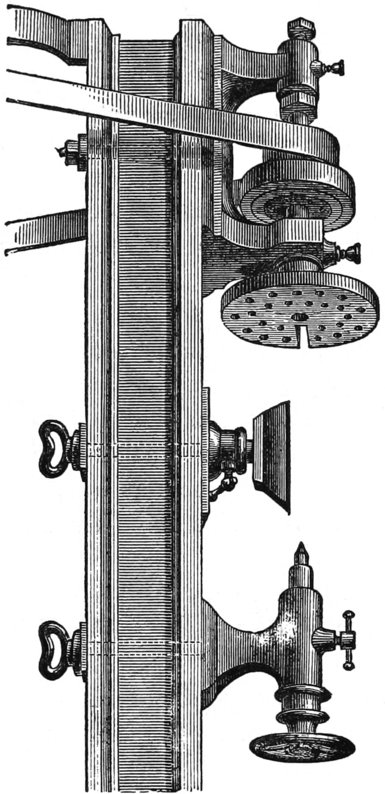 There is no family in this country that would not find it economy to have a foot lathe in the house, where the members have mechanical tastes—not necessarily the male members, for ladies use foot lathes, in Europe, with the greatest dexterity. Some of the most beautiful work ever made, was by Miss Holtzapfel, a relative of the celebrated mechanist of the same name. If there are shovels to be mended, the lathe will drill the holes and turn the rivets. If the handle of the saucepan is loose, it will do the same. If scissors or knives want grinding, there is the lathe; if the castors on the sofa break down, there is the lathe; if skates need repairs, either of grinding or of any other kind, there is the lathe. In short, it ought to be as much a part of domestic economy as the sewing machine, for it takes the odd stitches in the mechanical department that save money.