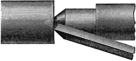 Another difficulty experienced by beginners is in holding the tool still—rigidly so. They allow it to “bob” back and forth against the work, if it runs untrue, so that it is impossible to make a job. The tool must be held hard down, as if it grew to the rest, and never moved, nor receded, until the cut begun is finished.