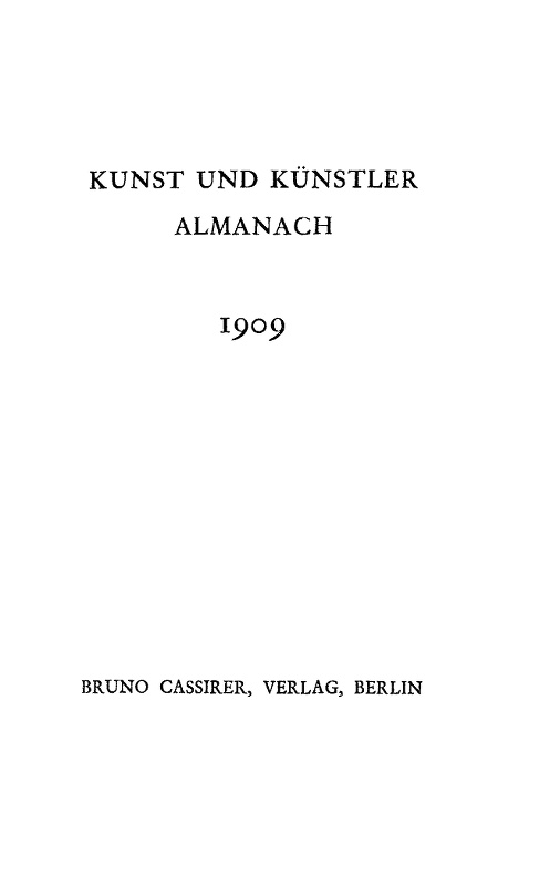 Von solchen Gedanken geleitet, hat sich der Verlag entschlossen, einige der markantesten Aeusserungen von Künstlern über Kunst oder über andere Künstler, die im Laufe von sechs Jahren in der Kunstzeitschrift „Kunst und Künstler“ veröffentlicht worden sind, gesondert in diesem Almanach abzudrucken. Der Verlag glaubt, dass es den Lesern willkommen sein muss, die in verschiedenen Jahrgängen verstreuten Aeusserungen einmal zu bequemem Genuss und Vergleich beisammen zu haben. Es soll nichts Vollständiges gegeben werden, es wird in keinem Punkte eine systematische Uebersicht über das Wollen und Vollbringen der modernen Kunst dargeboten; was der Leser hier findet, gleicht vielmehr einem merkwürdigen Feuerwerk von Geistesblitzen, vom Zufall oft entzündet und gleich dann wieder erloschen. Aber man wird finden, dass die Strahlen leidenschaftlichen Erkenntnisdranges, die von diesen Künstlerworten ausgehen, sehr oft mit ihrem jähen Glanz in neue Welten hineinleuchten und den Geist so zu jener Selbstthätigkeit zwingen, die dem denkfrohen Menschen höchster Genuss ist. Wenn diese Proben daneben Diesen oder Jenen begierig machen sollten, die Zeitschrift kennen zu lernen, aus der sie stammen, so wird diese Nebenwirkung sehr willkommen sein. Das ist selbstloser gemeint als es klingt. Denn die Zeitschrift, die denselben Titel trägt wie dieser Almanach, folgt im grossen derselben Tendenz, wie dieses kleine Buch; auch sie will Freude an der Kunst und Liebe zu den Künstlern erwecken und immer dem Grundsatz folgen, dem dieser Almanach seine Existenz verdankt: die Künstler über sich und ihre Arbeitsleidenschaften zum Sprechen zu bewegen und so zu erreichen, dass sich die Ideen der Kunst an sich selbst immer von neuem entzünden, dass die „Stichworte“ immer rechtzeitig gegeben werden, worauf die andern Akteure der fortschreitenden Kultur nur warten, um in Tätigkeit zu treten.