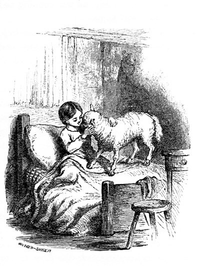 Horace had just come in and was standing by the fire, with Wangie and Tom, looking at my poor little pig, who lay on an old bag in his arms, dead—as I thought, till Horace, in laying him down on a chair, jarred him a little, and made him squeal again.