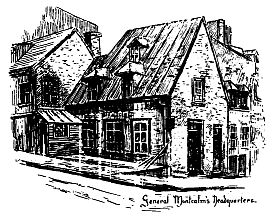Arnold, meanwhile, at the head of his column, was pressing towards the rendezvous, though when he passed Palace Gate he knew that the attack would be no surprise, for bells were ringing and drums beating the call to arms. In single file, with bent heads, and guns covered with their coats, the Americans dashed forward, stormed the first barrier at the corner of Sault-au-Matelot Street, and captured its defenders. But Arnold was severely wounded in the leg by a musket-ball, and had to drag himself back to the General Hospital, whilst his men made a gallant attempt to seize the second barrier also.