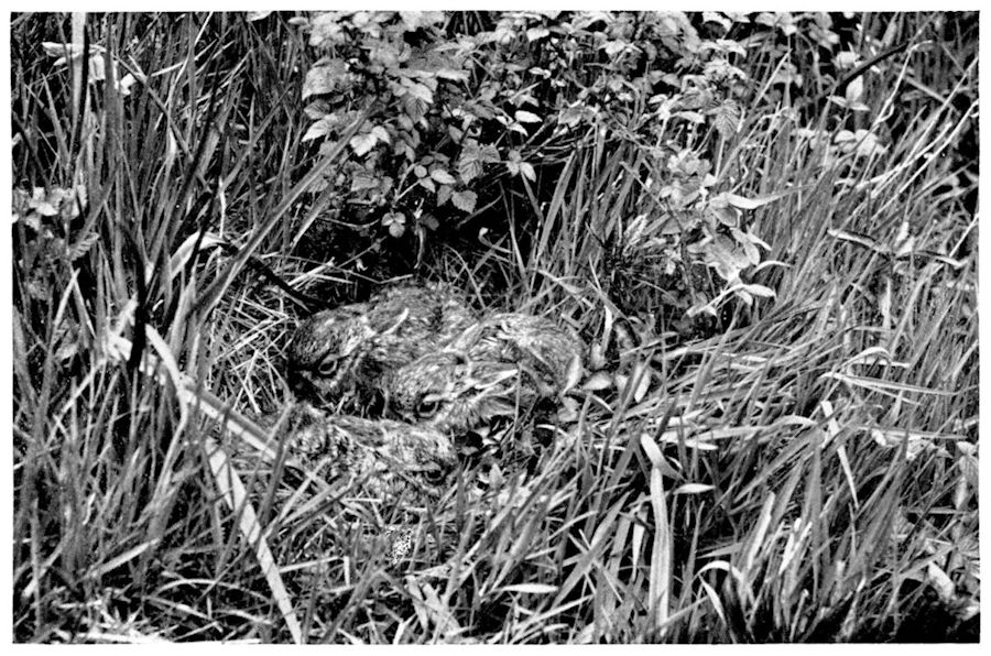 They were pretty little things with wide-open eyes, distinguishable by only the white star in the forehead of the male and the greater restlessness that he displayed. The tiny fellow, as if eager to explore the world into which he had just been born, was all agog to be out and about in the afterglow, and had not his mother checked him till the impulse passed, he would have left the form and perhaps lost himself amongst the furze. He constantly renewed his struggles to have his way; but the moment he ceased, she removed the restraining pad and caressed him till, like his sister, he became drowsy and at length fell asleep.