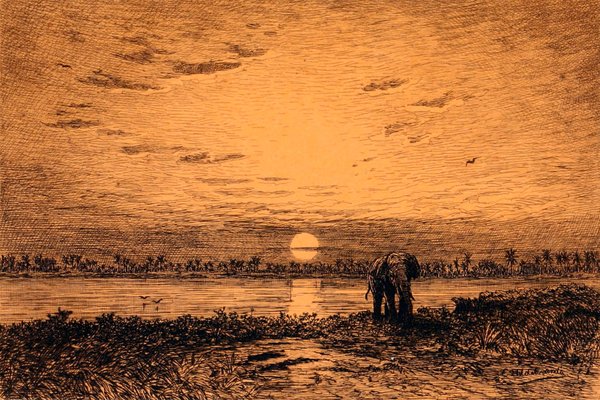Vor Sonnenaufgang in zwei Gharries ein paar Meilen bis zur Fähre des Salween-Flusses, den wir (die drei Amerikaner, Poche und ich) auf einem lebensgefährlichen Floss übersetzen, – dann in einem landesüblichen »Bullockcart« die gute Fahrstrasse weiter bis zu den »Farm Caves«, ausgedehnte Höhlen in merkwürdigen Bergen, die, mit reichster Vegetation überwachsen, senkrecht aus der Ebene aufsteigen. Zwei dieser Höhlen sind Wallfahrtsorte und mit Buddha-Statuen minderen Kunstwerthes ausgefüllt; die anderen bieten einigen Millionen Fledermäusen Asyl und werden letztere durch unsere bengalischen Kerzen unangenehm aufgescheucht – doch ist ein längerer Aufenthalt wegen des Gestankes und der Hitze undurchführbar. Die Rückfahrt auf dem originellen federlosen Holzkarren, dessen Zebus fortwährend durchgehen wollen, ist sehr amüsant – schiesse einige Riesengeier. – Sonnengluth in Burmah scheint nach der heutigen Probe kolossal! Abends Besuch des Gefängnisses, wo aber egyptische Augenkrankheit grassirt und wir schleunigst davonlaufen. – Vergebliches Trachten, einen berühmten Holzschnitzer zu finden: der Mann wohnt im Birmanenviertel, unser Kutscher spricht blos bengalisch – also Verständigung unmöglich. – Am Flussufer produciren sich uns einige Arbeitselefanten, die zur Tränke geführt werden – auf Befehl des Kornak knien sie nieder, heben die Rüssel in die Höhe und trompeten ein donnerndes Salaam! Die ihnen zugeworfenen Annastücke heben sie sorgfältig auf und reichen sie dem alten Wärter!