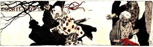 Any one less determined upon a purpose than the stranger could hardly have stood his ground. As it was, he made no pretence of defending himself from the attack, but submitted to the assault of the Bluebird Club with so much dignity of demeanor that, what with the richness of his attire, so different from their tinsel foppery, and what with the silence of his observation,—his eyeballs now closing into darkness and now shining whitely beneath the ebony shadow of his mask,—it began to dawn upon the brains even of our half-tipsy buffoons that here was something of a different purpose from their intemperate madness and frenzy of folly.