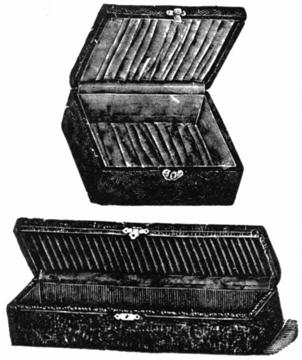 | 14/709. | As cut. Similar to above but with ruling pen. Size of case, 6½ × 2¾ inches | $8 40 |