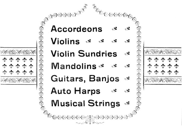 | 745/2½ | consists of 30 strings in flat cardboard boxes divided into compartments, contains 15 E gut strings, 8 A gut strings, 4 D gut strings, and 3 G strings | $ 3 00 |