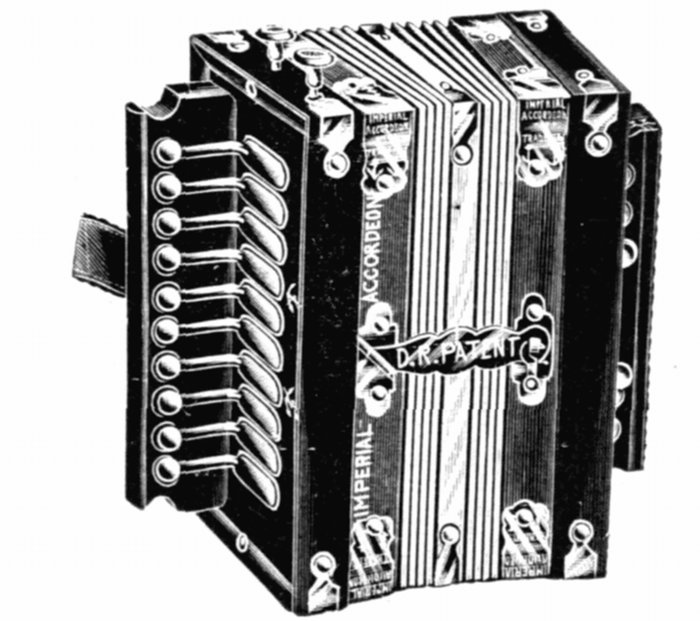 | The Clover Harmoniphone is an entirely new and novel invention, combining one of the famous Clover Harmonicas with a metal Phone. The Phone adds greatly to the richness and purity of tone and increases the volume many times over. Acting like a horn on a phonograph it takes up every note whether faint or loud and sends them forth with wonderful effect. One Phone will last a lifetime as it is fitted with flanges from which the mouth organ can be detached or replaced at will. Each Harmoniphone is packed in wooden box complete with instruction book. Per doz. | $9 60 | |