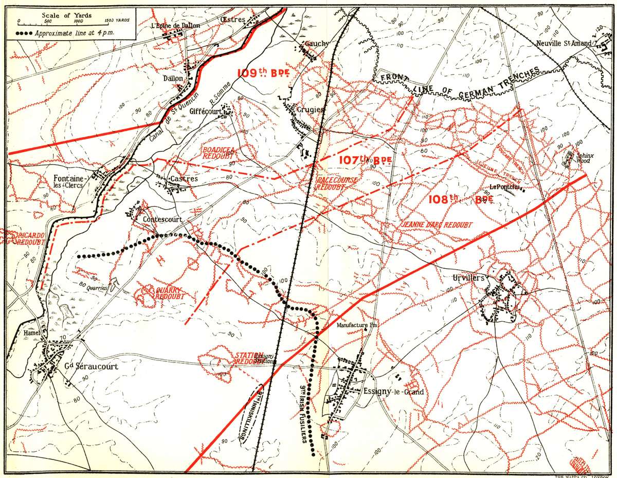 | New Aspect of Warfare—Plans for the Attack—Artillery Programme—A Successful Raid—Anniversary of the Boyne—Attack North of Ancre—Advance of 107th Brigade—A Desperate Situation—July 2nd—Causes of Failure—Move to Flanders. | ||