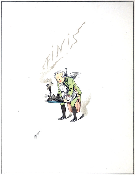 By this time, of course, the babies had been tucked in bed. The Deacon had taken them into the dining car and feasted them with all the inexhaustible luxuries for which these cars on the Michigan Central R.R. are so famous.